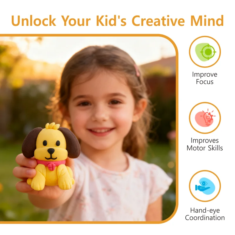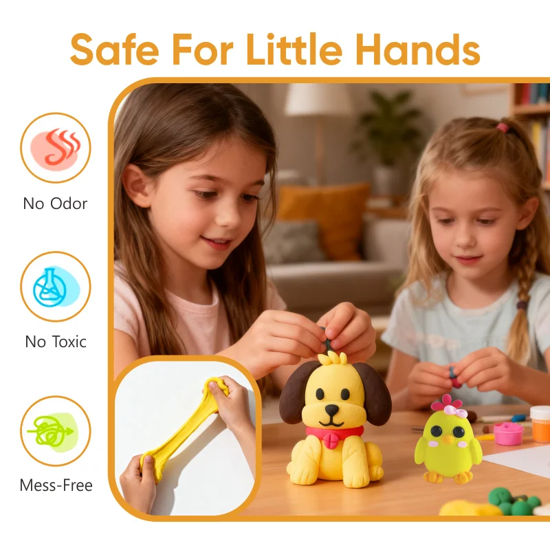 Vividyneの空気乾燥粘土キットは、子どもたちが創造性を楽しく、安全かつ簡単に発揮できる優れたツールです。このセットは、探究心旺盛な小さな手と、成長し続ける想像力を意識して設計されています。焼き工程を必要としない、柔らかく軽量なモデルマジック粘土が付属しており、オーブンや特別な工具を使わずに、動物やキャラクター、小型の立体作品を自由に制作できます。保護者の方々は、無毒な配合と、成形・接合が容易な滑らかで可塑性の高い質感を高く評価されるでしょう。