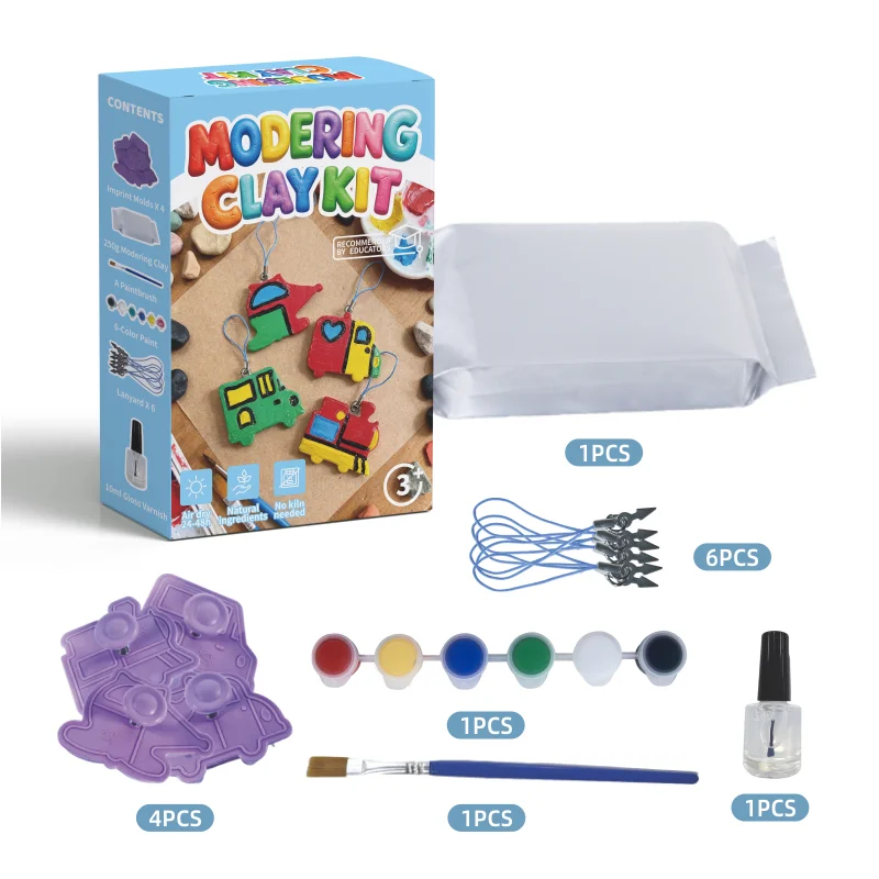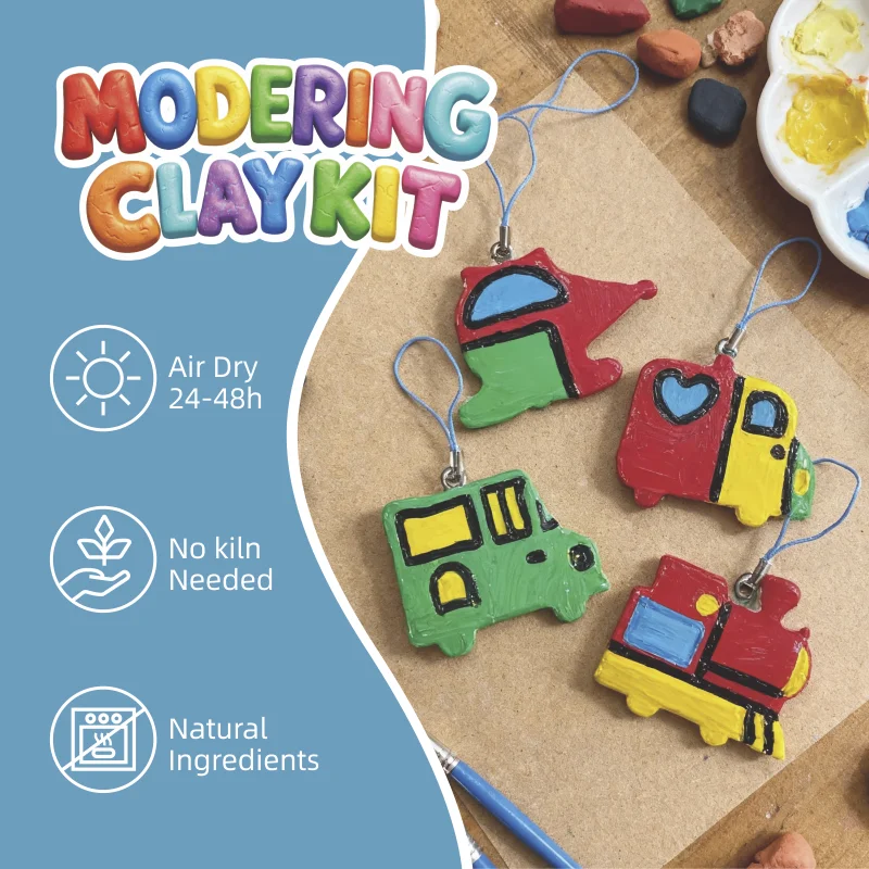 大人の方は、この製品をガイド付きの遊びや学習に活用できます。教師やセラピストの方は、このキットを美術の授業や手指の細かい運動能力を育てるセッションに取り入れることができます。保護者の方は、この活動をシンプルなSTEAM体験へと発展させられます——形や色について話し合ったり、空気乾燥性粘土が乾燥する過程でどのように変化するかを観察したりすることができます。また、このセットは、絵を描くことが好きで、乗り物や手作業のプロジェクトに興味を持つ、これから画家を目指す子どもや想像力豊かな子どもへの心のこもった贈り物にも最適です。