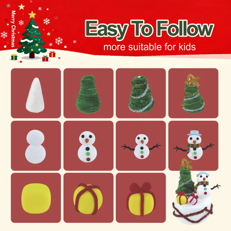 この多機能キットは、さまざまな祝祭シーンに最適です:クリスマスパーティー:子どもたちを楽しませ、ユニークなパーティーフェイバーを作成するワクワクするアクティビティ。家族の絆づくり:親子で一緒に楽しめる楽しい活動で、忘れられないホリデーの思い出をつくります。教室での課題学習:幼稚園および小学校の美術授業にぴったりの教材で、創造性とチームワークを育みます。ホリデーギフト:美しく仕上げられた完成品は、家族や友人への心のこもったパーソナライズされた贈り物になります。ホームデコレーション:完成した雪だるまやクリスマスツリーは、かわいらしい手作りのクリスマス装飾品として活用できます。
