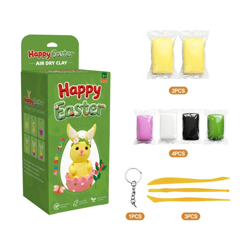 このキットには、柔らかくカラフルな空気乾燥粘土のパックがいくつか含まれており、簡単に成形できます。オーブンは不要で、粘土は自然乾燥するため、自宅で簡単に作品を仕上げることができます。子どもたちは色を混ぜたり、型押しをしたりして、自分のアイデアを長く残る記念品に変えることができます。各粘土パックは小さな指にも安全で、汚れも簡単に落とせるよう配合されており、保護者の負担を軽減します。十分な量の粘土が含まれているため、小さな人形、卵、ミニウサギの仲間など、さまざまな作品をたくさん作れます。