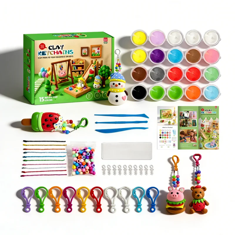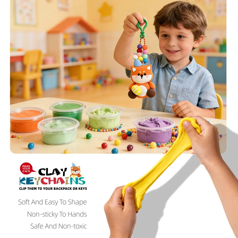 高品質で無毒の空気乾燥粘土で作られており、素材は柔らかく、延びやすく、ベタつかないため、小さな手でも安全に遊べます。焼き付けや複雑な工具は一切不要です。成形・装飾後、自然乾燥させるだけで、丈夫で長持ちするキーホルダーが完成します。国際的な安全基準を満たすよう厳格に検査済みのこのキットなら、保護者は安心して見守ることができ、子どもは自分のアート表現を自由に楽しめます。