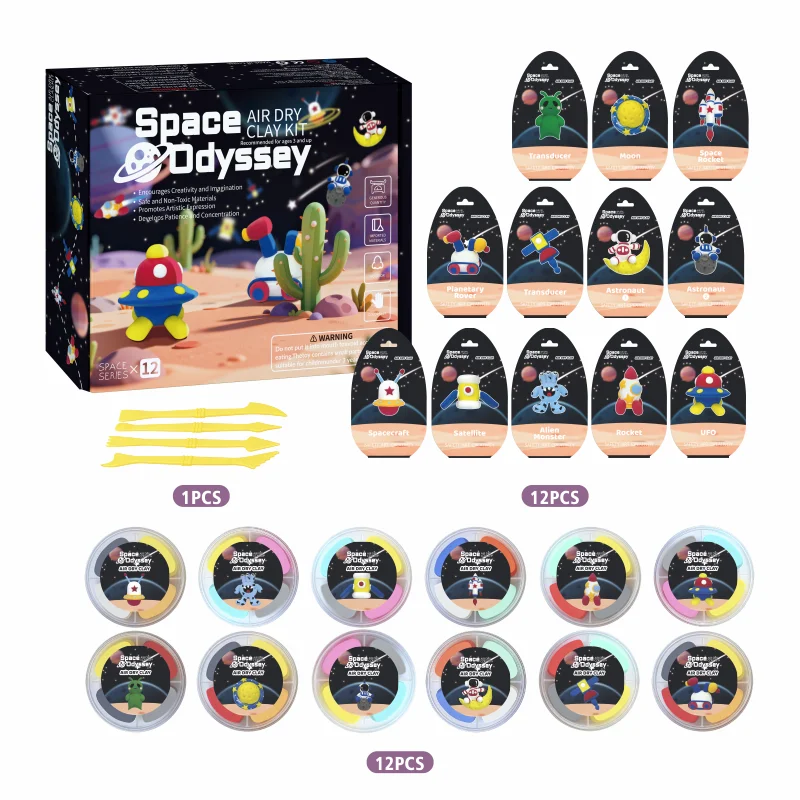 この粘土は多用途で、さまざまな種類の工作プロジェクトに対応します。子どもたちは、宇宙ヘルメットや人工衛星などの小さな模型を作ることもできますし、太陽系全体のような大規模なシーンを創り上げることも可能です。空気中で自然乾燥するため、専用の機器を待つことなく、柔らかい粘土が固い作品へと変化する様子を子どもたち自身がすぐに確認できます。こうした即時のフィードバックは、創造性を高め、原因と結果の関係を学ぶうえでも役立ちます。教師や保育者は、宇宙に関する体系的な授業や、自由な造形活動の時間など、さまざまな教育場面で本製品を活用できるでしょう。