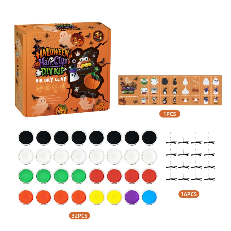 Vividyne ホールデー用卸売DIYヘアクリップクラフトキットは、子供向けパーティーおよび季節行事の企画・運営を担当する保護者、教師、保育関係者の方々に向けた、明るく楽しいハンドクラフトセットです。このキットにはシンプルな素材と発想豊かなアイデアが詰まっており、エアドライクレイと分かりやすい説明書を用いて、子どもたちが「お化けっぽい」「おかしな」「かわいらしい」ヘアクリップを自ら作成できます。グループでのクラフト活動、授業での工作、パーティーグッズ、家族での共同作業など、創造性と安全性が重視されるあらゆるシーンに最適です。